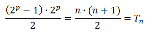 Consideriamo un numero perfetto nella sua forma 2p-1(2p - 1). Il primo fattore 2p-1 può essere scritto anche in un altro modo equivalente:2p-1 = 2p : 2