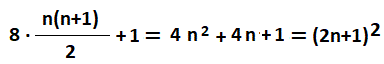 Giustificazione geometrica: Ad esempio, 8 ⋅ T3 + 1 = Q7 = 49