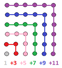 In generale l'n-esimo numero quadrato si ottiene sommando i primi n numeri dispari: