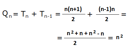 Qn = 1 + 3 + 5 + ... + 2n-1 = n(1+2n-1): 2 = n2