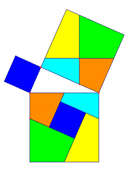 92 + 122 = 152 → 81 + 144 = 225 → Q9 + Q12 = Q15Questo è il più famoso teorema della matematica e venne espresso in termini geometrici: il quadrato costruito sull'ipotenusa di un triangolo rettangolo è equivalente alla somma dei quadrati costruiti sui cateti: