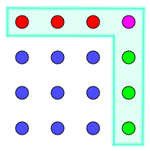 Per passare dal numero quadrato Q3 al successivo numero quadrato Q4 bisogna aggiungere 2x3+1=7 punti. In particolare bisogna aggiungere una riga di tre punti, una colonna di tre punti e un punto posto tra la riga e la colonna.