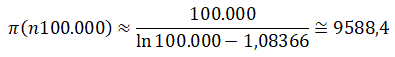 Per n = 100.000, Π(100.000) = 9.592 e con la formula di legendre si ottiene: