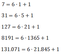 non sono primi. Comunque è sorprende che Mersenne senza una calcolatrice o un computer e con carta e penna abbia commesso solo cinque errori se si considera che M127 è un numero di 39 cifre.