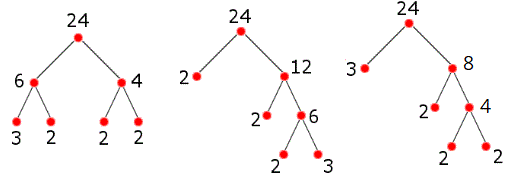 24 = 2 ⋅ 12 = 2 ⋅ 2 ⋅ 2 ⋅ 3 = 23 ⋅ 3