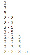 24 = 4 ⋅ 6 = 2 ⋅ 2 ⋅ 2 ⋅ 3 = 23 ⋅ 3