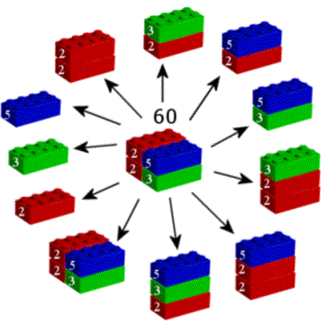 In figura sono stati costruiti tutti i possibili pezzi utilizzando i mattoncini che compongono il numero 60.