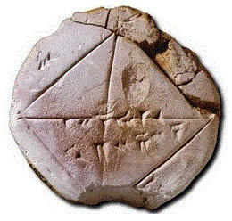 (radice quadrata di due) inizia 4000 anni fa in Babilonia. Su una piccola tavoletta di argilla (risalenta tra il 1900 e il 1600 a.C. e catalogata YBC 7289, attualmente è conservata presso l'università di Yale negli Stati Uniti), uno scriba babilonese ha inciso un quadrato con le due diagonali e tre numeri in caratteri cuniformi.