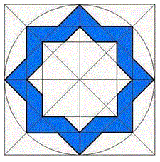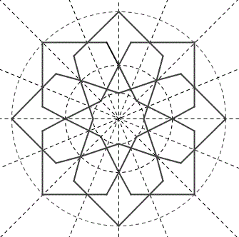 Ad esempio, un classico motivo decorativo era un poligono stellato con otto punte chiamato sino ottenuto tracciando alcuni quadrati ruotati di 45° tra loro e inscritti in un cerchio.