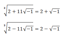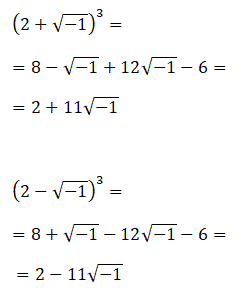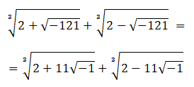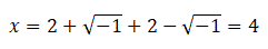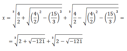 Bombelli cercò di trovare la soluzione x = 4 lavorando su questo risultato. Sapendo che la somma doveva essere uguale a 4 pose: