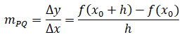 Il coefficiente angolare della retta secante PQ è dato dal rapporto incrementale: