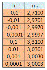 Attribuendo ad h valori negativi e valori positivi sempre più piccoli otteniamo i valori di mt riportati in tabella: