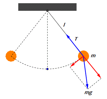 Si racconta che Galileo Galileo, osservando le oscillazioni di un lampadario nel duomo di Pisa notò che la loro durata, misurata con il battito del polso, rimaneva costante anche se le ampiezze diminuivano sempre di più. Dopo alcuni anni ricordandosi di questa osservazione condusse una serie di esperimenti per studiare sistematicamente questo fenomeno e individuare la legge che regola il moto del pendolo. Prese quindi un corpo di massa m sospeso mediante un filo inestensibile di lunghezza l e massa trascurabile. E misurò il tempo delle oscillazioni spostando la massa dalla sua posizione verticale di equilibrio e poi lasciandola andare. Se si scompone la forza peso della massa nelle due componenti perpendicolare e parallela allo spostamento, s'intuisce che è solo la componente parallela a produrre il moto perchè la componente verticale è equilibrata dalla tensione del filo. E quindi, è questa forza che fa oscillare la massa da entrambe le parti rispetto alla sua posizione di equilibrio.