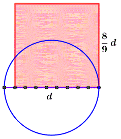Togli 1/9 a un diametro e costruisci un quadrato sulla parte che ne rimane; questo quadrato ha la stessa area del cerchio