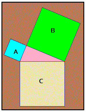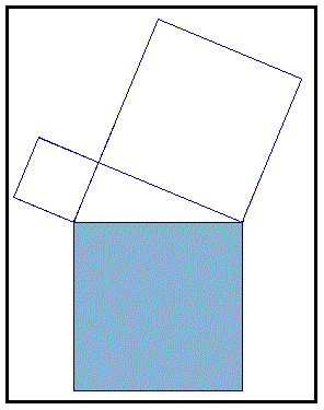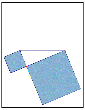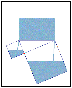Costruiamo il triangolo rettangolo e i quadrati sui lati come se fossero dei recipienti chiusi trasparenti e comunicanti mediante un piccolo foro. Riempiamo d'acqua il recipiente quadrato sull'ipotenusa.