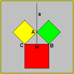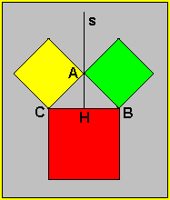Sappiamo che la somma delle aree dei quadrati costruiti sui cateti è uguale all'area del quadrato costruito sull'ipotenusa. Supponiamo che la base BC del nostro triangolo resti sempre la stessa e di muovere il vertice A lungo la semiretta s. Per ogni spostamento di A anche piccolissimo si ottiene un nuovo triangolo che però non è più retto in A. Possiamo avere due casi: