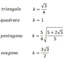 dove k è un valore costante che dipende dal tipo di poligono regolare. Ecco ad esempio il valore di k per alcuni poligoni regolari: