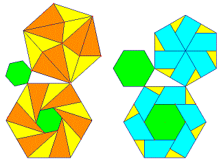 Nei paragrafi precedenti abbiamo visto la vericità del teorema di Pitagora mediante l'equidecomponibilità tra i quadrati sui cateti e il quadrato sull'ipotenusa, nelle seguente figura viene mostrata l'equidecomponibilità tra poligoni regolari sui cateti e lo stesso poligono regolare sull'ipotenusa.