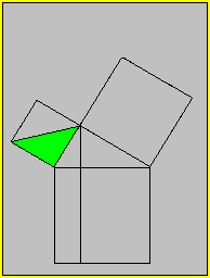 Operiamo su due di questi triangoli (uno per ogni quadrato quelli colorati) con una trasformazione che lascia invariata l'area e ciò si ottiene facendo scorrere un vertice parallelamente alla base in modo che si conservi l'altezza relativa alla base. In questo modo i due triangoli hanno un lato uguale all'ipotenusa del triangolo rettangolo e un lato uguale al lato del quadrato costruito sul cateto.