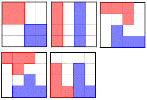Ci sono 5 modi per dividere un quadrato 4 per 4 in 4 parti congruenti.