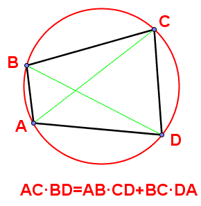 Se un quadrilatero è inscritto in una circonferenza, la somma dei prodotti delle coppie di lati opposti è uguale al prodotto delle sue diagonali.