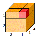 Poi inseriamo altre due scatole; una di volume 1⋅1⋅2 e l'altra di volume 1⋅2⋅2 come si vede in figura.