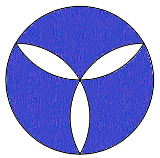 Quesito n° 13: In un cerchio di raggio 1 sono stati tracciati tre archi di circonferenza di raggio 1 con centri nei vertici di un triangolo equilatero inscritto nel cerchio. Quanto vale l'area della parte colorata?