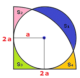 Quesito n° 15: Che relazione c'è tra la somma delle aree delle quattro lunule e l'area del quadrato?