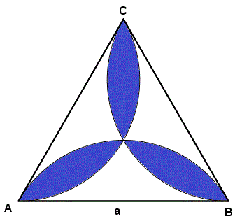 Quesito n° 26: Quanto vale l'area del triangolo di Reuleaux in figura?