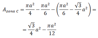 Possiamo determinare una delle quattro regioni congruenti togliendo da un quarto di cerchio di raggio a il settore circolare sotteso