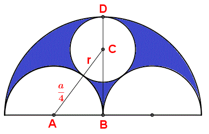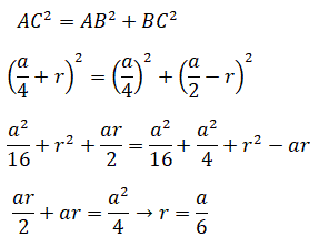 BC = BD - CD = a/2 - r;   AC = a/4 + r;   AB = a/4