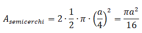 Area dei due semicerchi di raggio a/4: