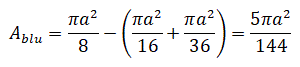 Possiamo comprendere che l'area della parte colorata di blu si ottiene togliendo dall'area del semicerchio di diametro a due semicerchi di