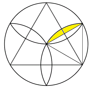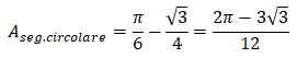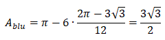 Possiamo comprendere che l'area della parte colorata di blu si ottiene togliendo dall'area del cerchio di raggio 1 sei segmenti circolari