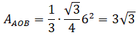 L'area del triangolo AOB è equivalente a un terzo dell'area del triangolo equilatero e cioè: