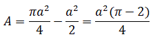 Pertanto, la superficie colorata è uguale alla differenza tra il settore circolare uguale a un quarto di cerchio di raggio a e il
