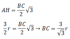 Conoscendo l'altezza del triangolo equilatero in funzione di r possiamo determinare il lato BC del triangolo in funzione di r: