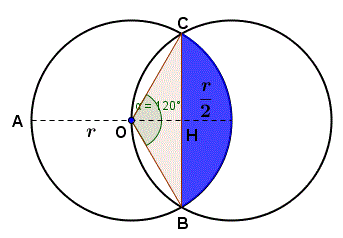 120° e raggio r e il triangolo isoscele OBC. L'area del settore circolare è: