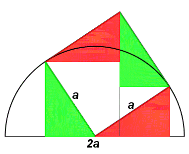 La somma delle aree dei due quadrati è equivalente al quadrato di lato a come si vede in figura: E quindi la somma delle aree dei due quadrati è: a2.