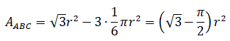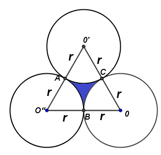Per ottenere l'area del triangolo curvilineo bisogna togliere dall'area del triangolo OO'O" le aree dei tre settori circolari ognuna
