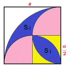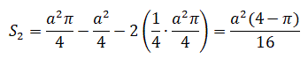 Possiamo determinare l'area di S2 togliendo dall'area del quarto di cerchio di raggio a il quadrato di lato a/2 e due volte il