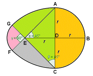 L'area dell'uovo si ottiene sommando le aree: