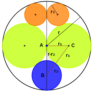 r2 si ottiene il triangolo rettangolo ABC con i lati r1, r1+r2, r-r2.