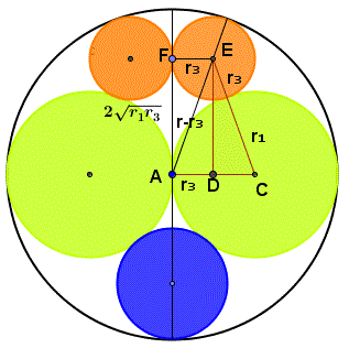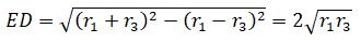 il cateto AD=r3, il cateto ED=2√(r1r3) e l'ipotenusa r-r3 e applichiamo il teorema di Pitagora: