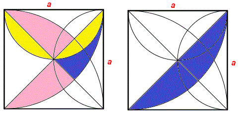 iniziale. L'area del segmento circolare è data dalla differenza tra il settore circolare con ampiezza di 90° e di raggio a e il triangolo