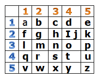 Ad ogni lettera corrisponde una coppia di numeri ordinati (le righe e le colonne sono le coordinate delle lettere).