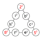b2 + c2 = 97;   e2 + f2 = 37;   h2 + i2 = 58