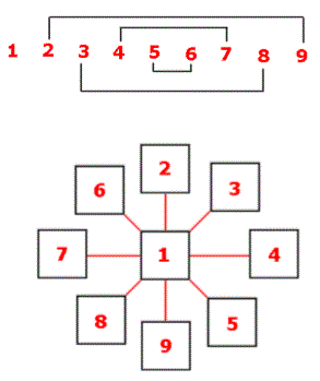 soluzione del quesito consiste quindi nel mettere il 9 nella casella centrale e poi allineare coppie di numeri aventi per somma 18 – 9 = 9.