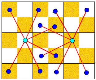 Da ogni casella vicino a quelle ad angolo (caselle 2, 5, 7, 12, 19, 24) si possono raggiungere solo tre caselle.