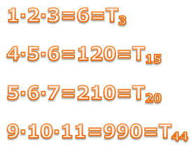 Quesito n° 12: Esistono solo sei numeri triangolari che sono il prodotto di 3 numeri consecutivi. In figura sono indicati 4 di questi particolari numeri triangolari. Sapresti trovare il quinto numero triangolare che ha questa caratteristica?